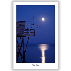 Instant suspendu durant l’heure bleue, en tête à tête avec la lune qui se reflète doucement sur l’eau et enveloppe le paysage d’une lueur apaisante